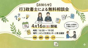 4月16日開催|行政書士による無料相談会のお知らせ